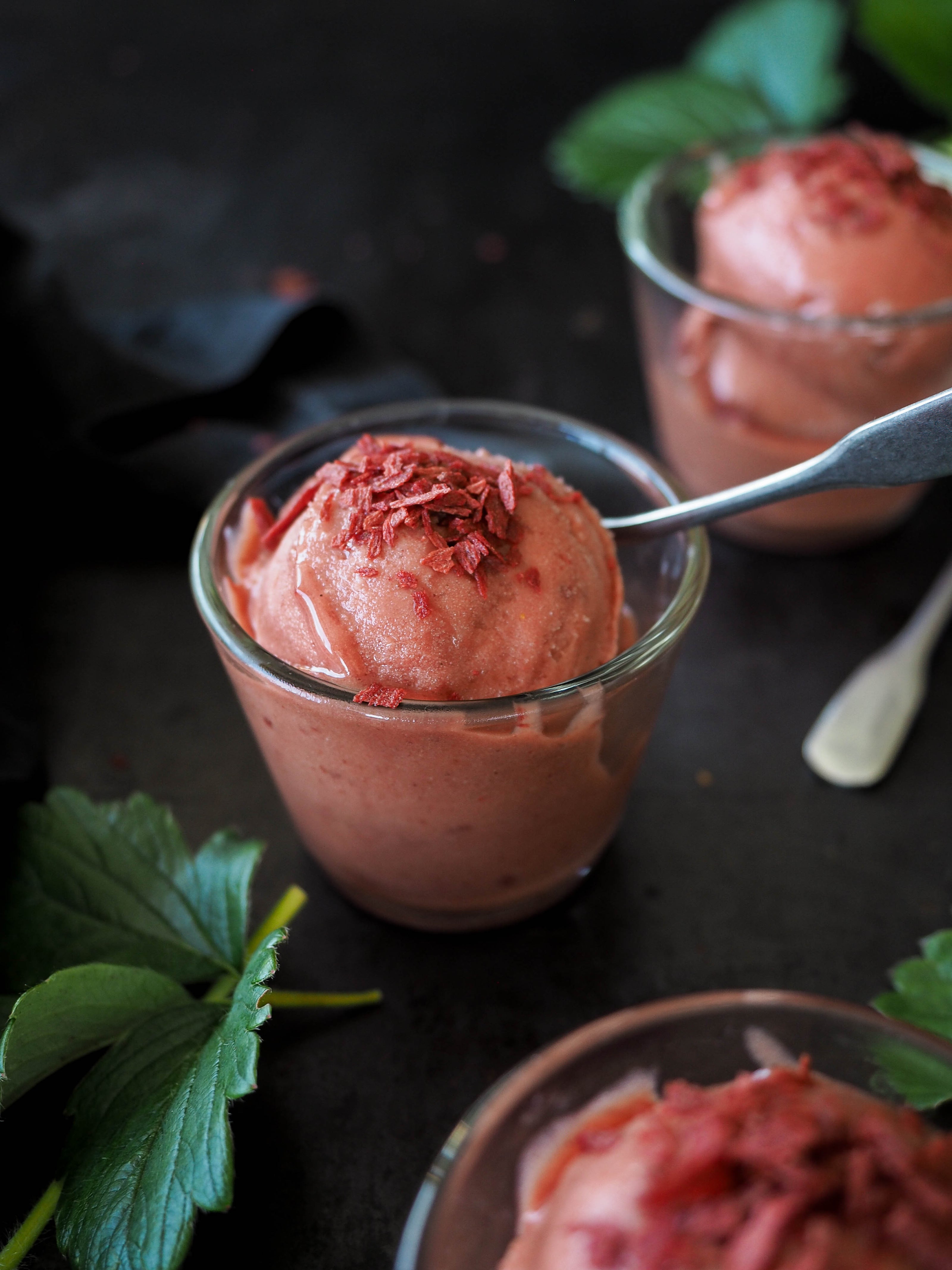 VEGANES ERDBEERSORBETErfrischend, fruchtig und ganz natürlich – unser veganes Erdbeersorbet überzeugt mit intensiver Farbe und vollem Geschmack. Mit nur wenigen Zutaten und unseren Bio Genussflocken Erdbeere zauberst du in wenigen Minuten ein cremiges Sorbet, das ganz ohne raffinierten Zucker auskommt – perfekt für heiße Tage, Gäste oder gesunde Genussmomente.