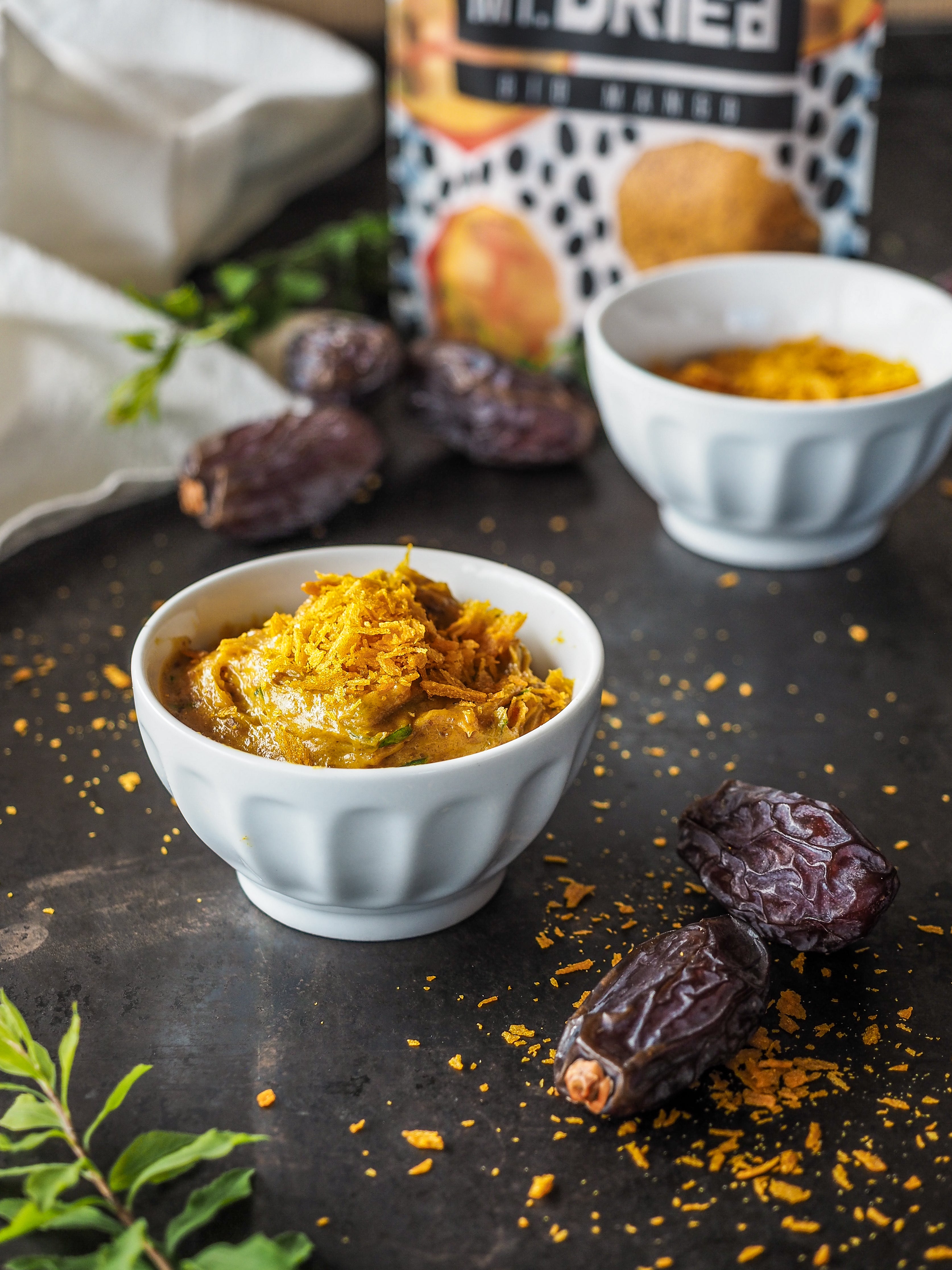 AUFSTRICH ANANAS DATTELAUFSTRICH ANANAS DATTELFruchtig trifft würzig – unser Ananas-Dattel-Aufstrich vereint die exotische Süße getrockneter Ananasflocken mit dem feinen Aroma von Datteln und der frischen, leicht herben Note von Rosmarin. Ein außergewöhnlicher Brotaufstrich, der sich auch wunderbar als Dip oder als Highlight auf der Käseplatte macht.