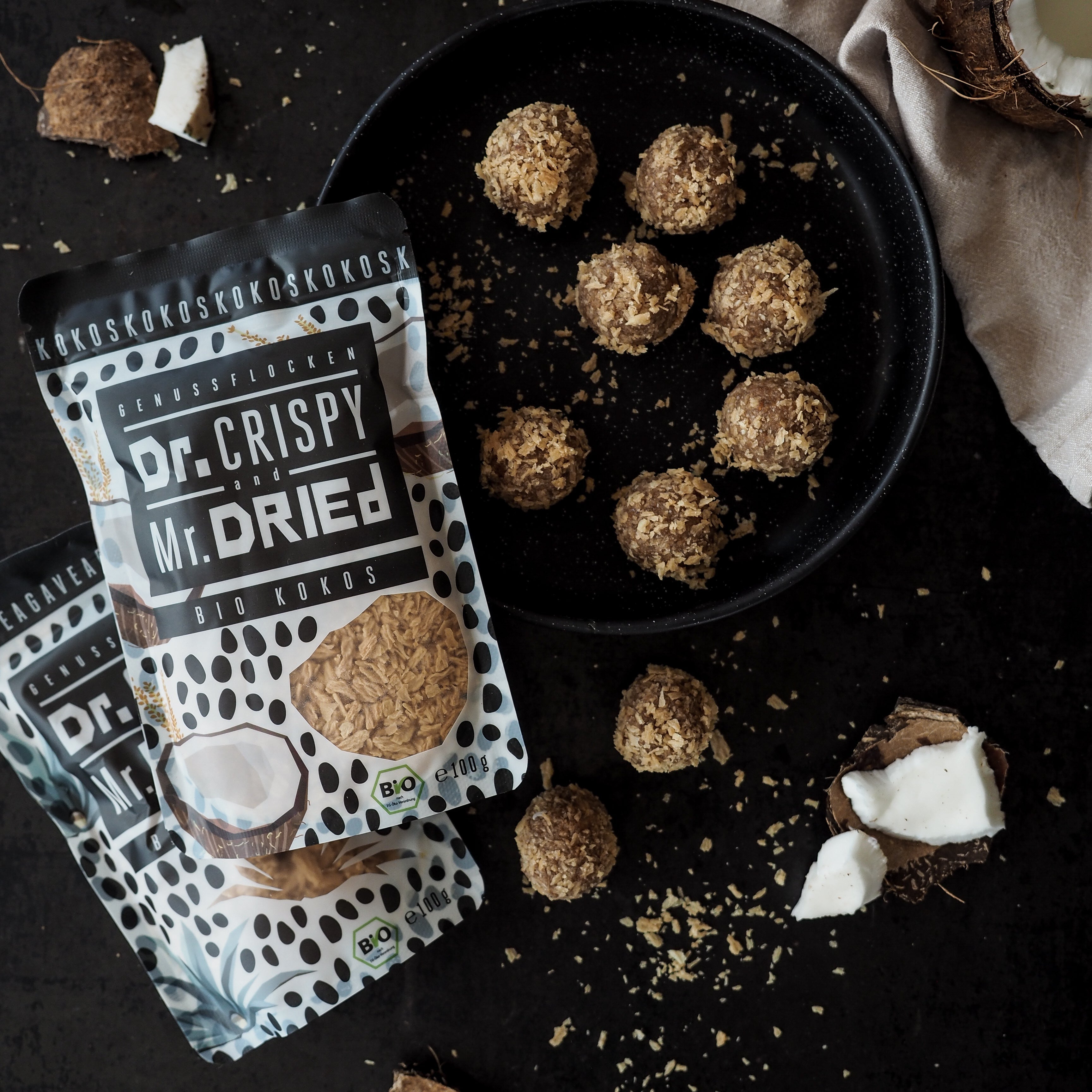 In den Genussflocken Bio Kokosblüte wälzen und kühl lagern.