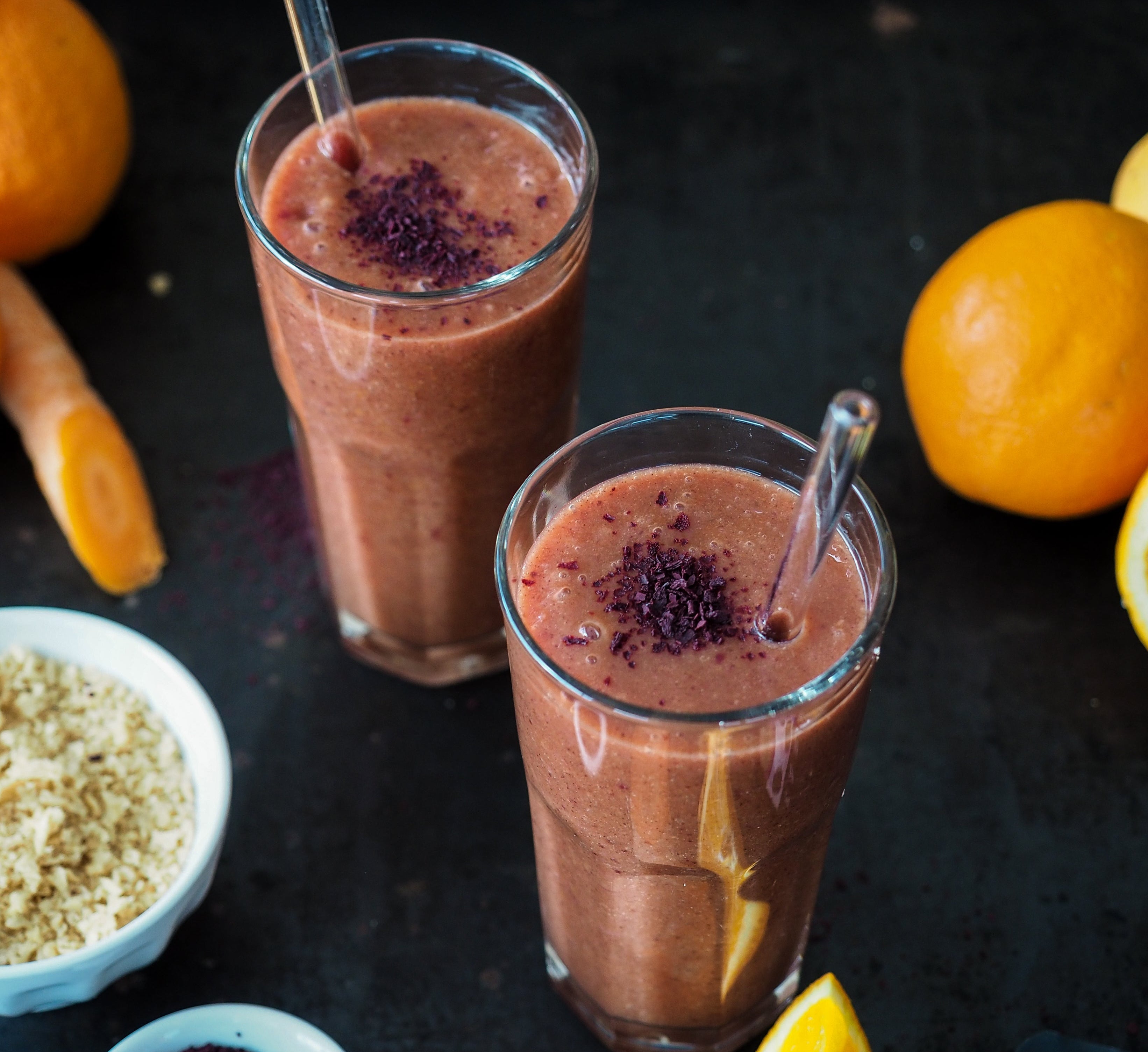 SMOOTHIESUnser Smoothie mit schwarzer Karotte, sonnengereifter Mango und Kokosblütenzucker ist perfekt als gesunder Frühstücks-Smoothie, Detox-Getränk oder energiegeladener Snack für zwischendurch.