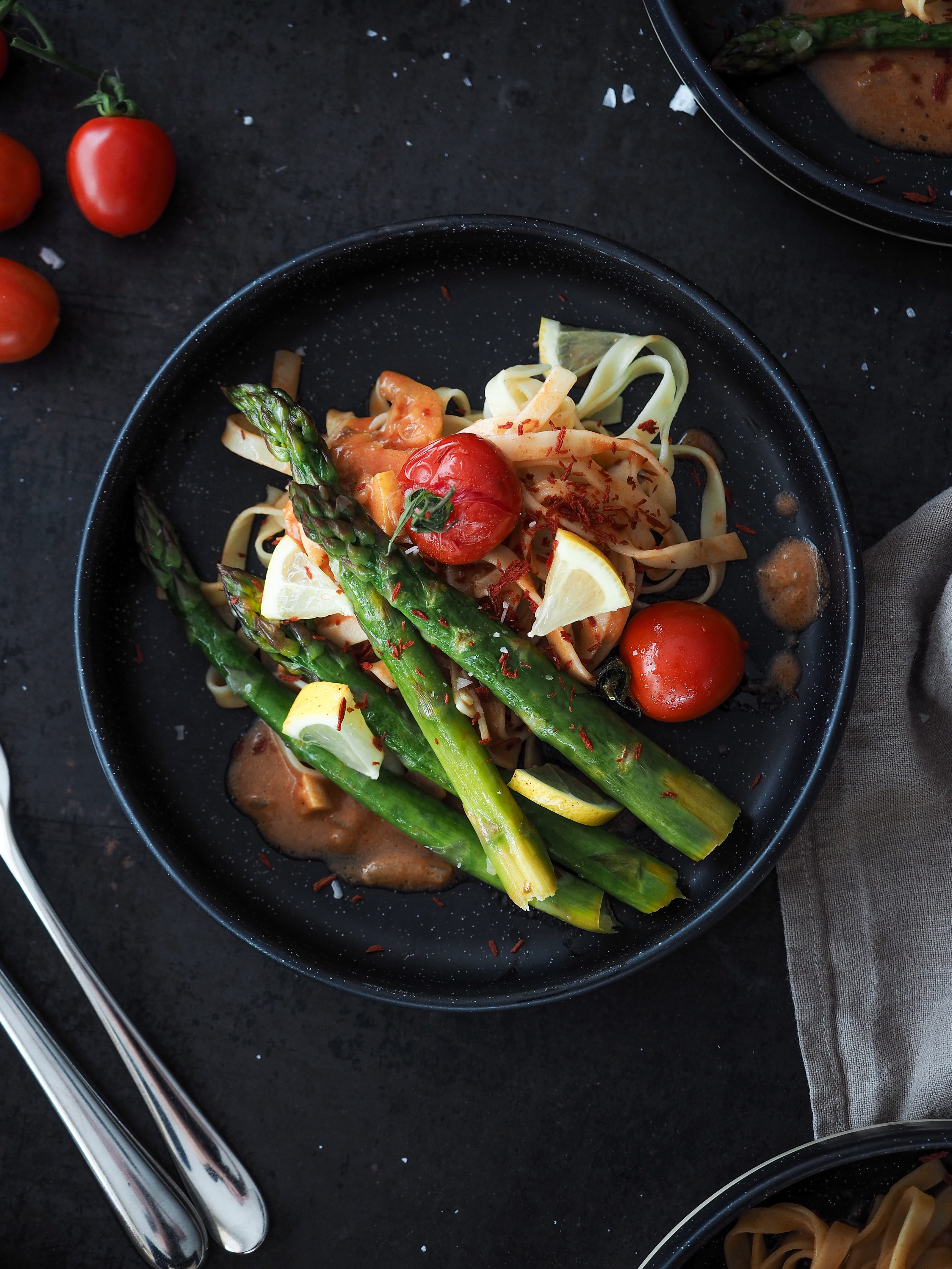 PASTA MIT GRÜNEM SPARGEL UND TOMATENCREMEPASTA MIT GRÜNEM SPARGEL UND TOMATENCREMEFrühlingshafte Pasta mit grünem Spargel und Tomatencreme – cremig, aromatisch und vegetarisch. Perfekt für leichte, saisonale Küche.