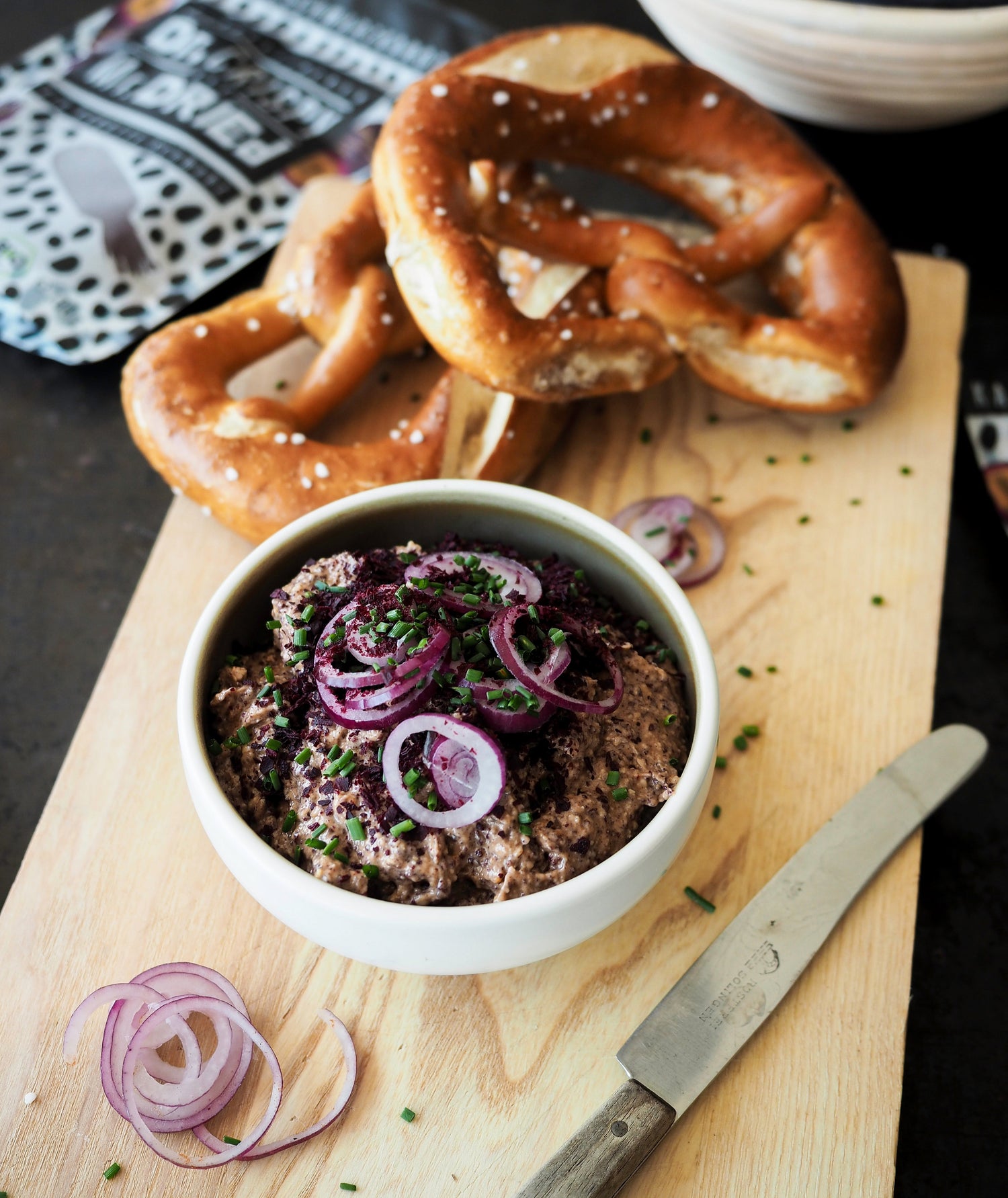 Dazu passen Laugenbrezen oder frisch gebackenes Brot.