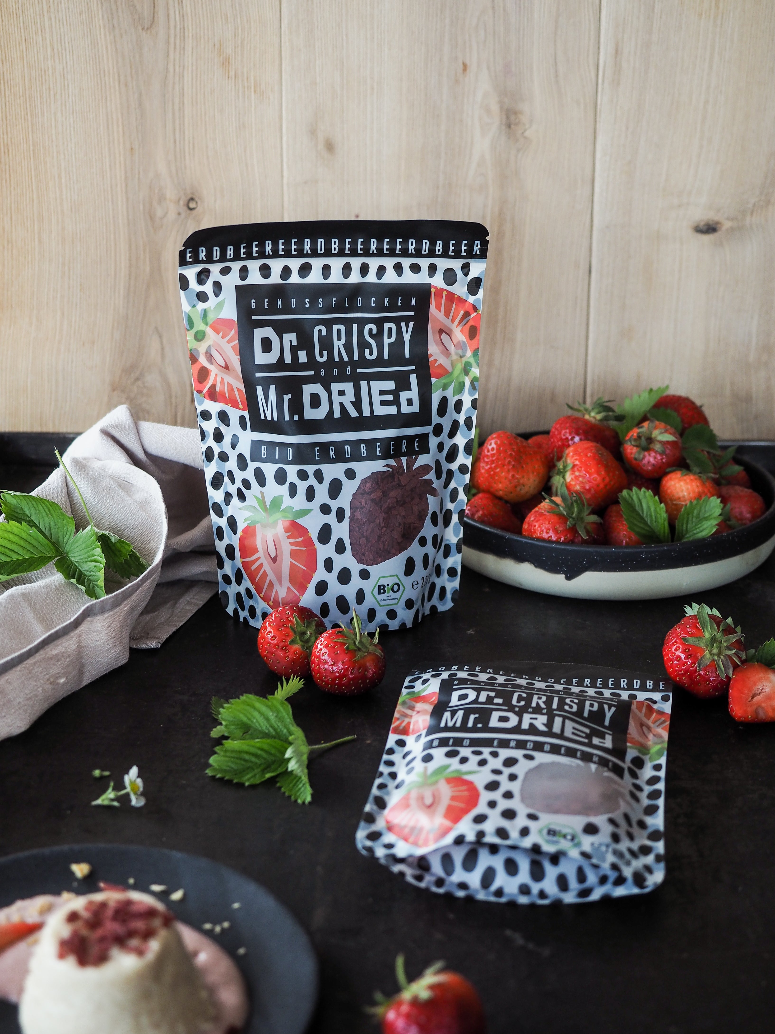 Cremig, elegant und mit fruchtigem Finish – unsere Panna Cotta mit luftigem Erdbeerschaum aus getrockneten Erdbeerflocken vereint zarte Vanillenoten mit intensivem Erdbeeraroma: ideal als sommerliches Dessert, frischer Abschluss für festliche Menüs oder fruchtige Leckerei ohne künstliche Zusätze.