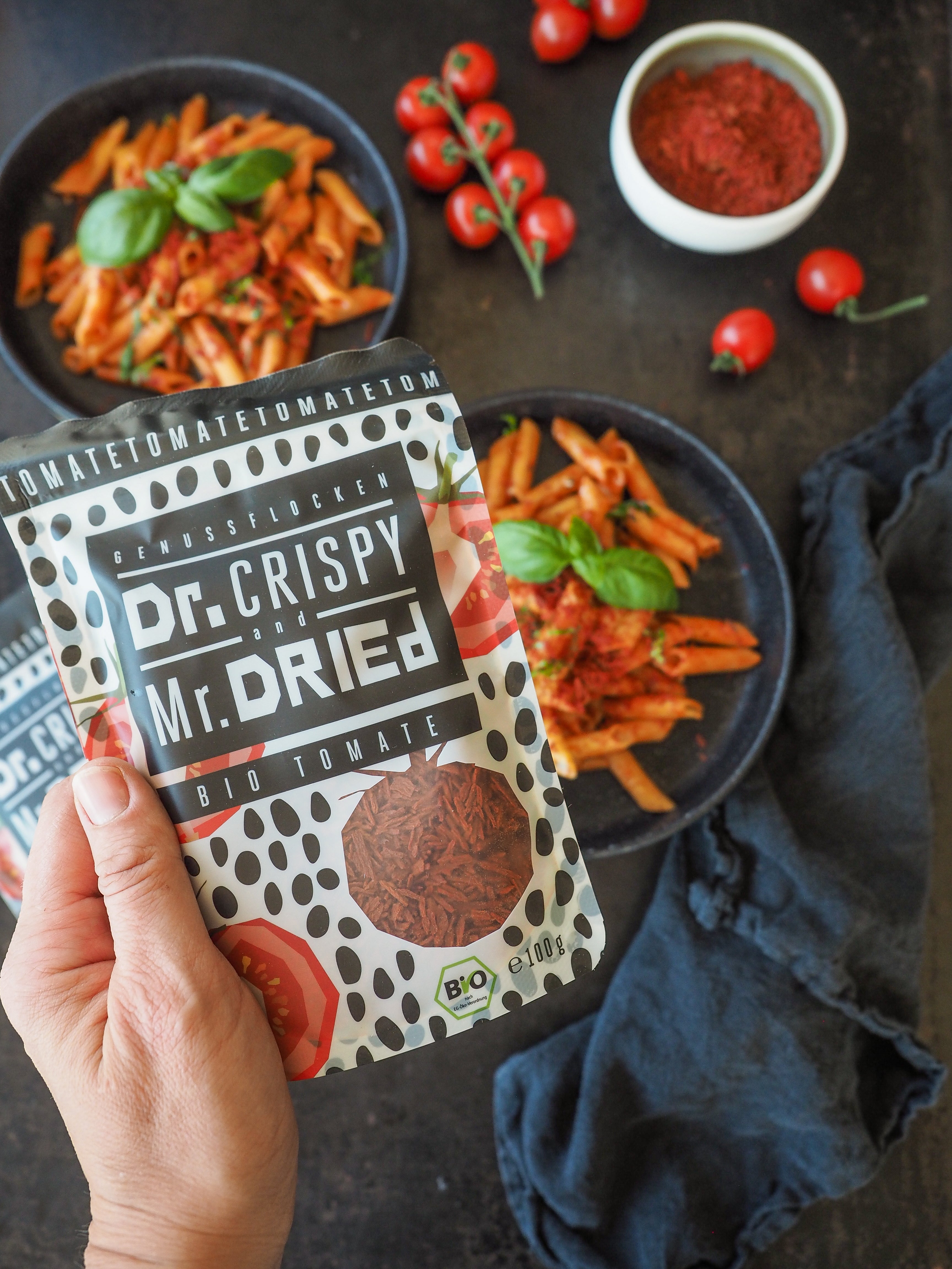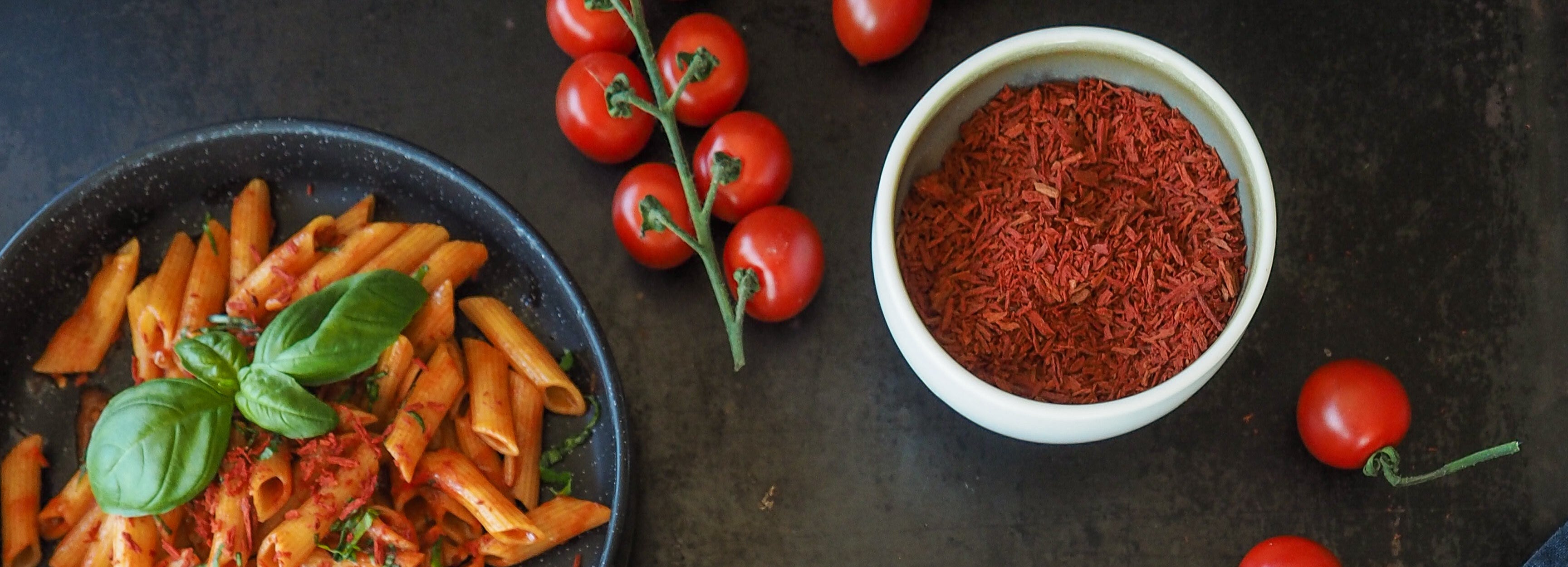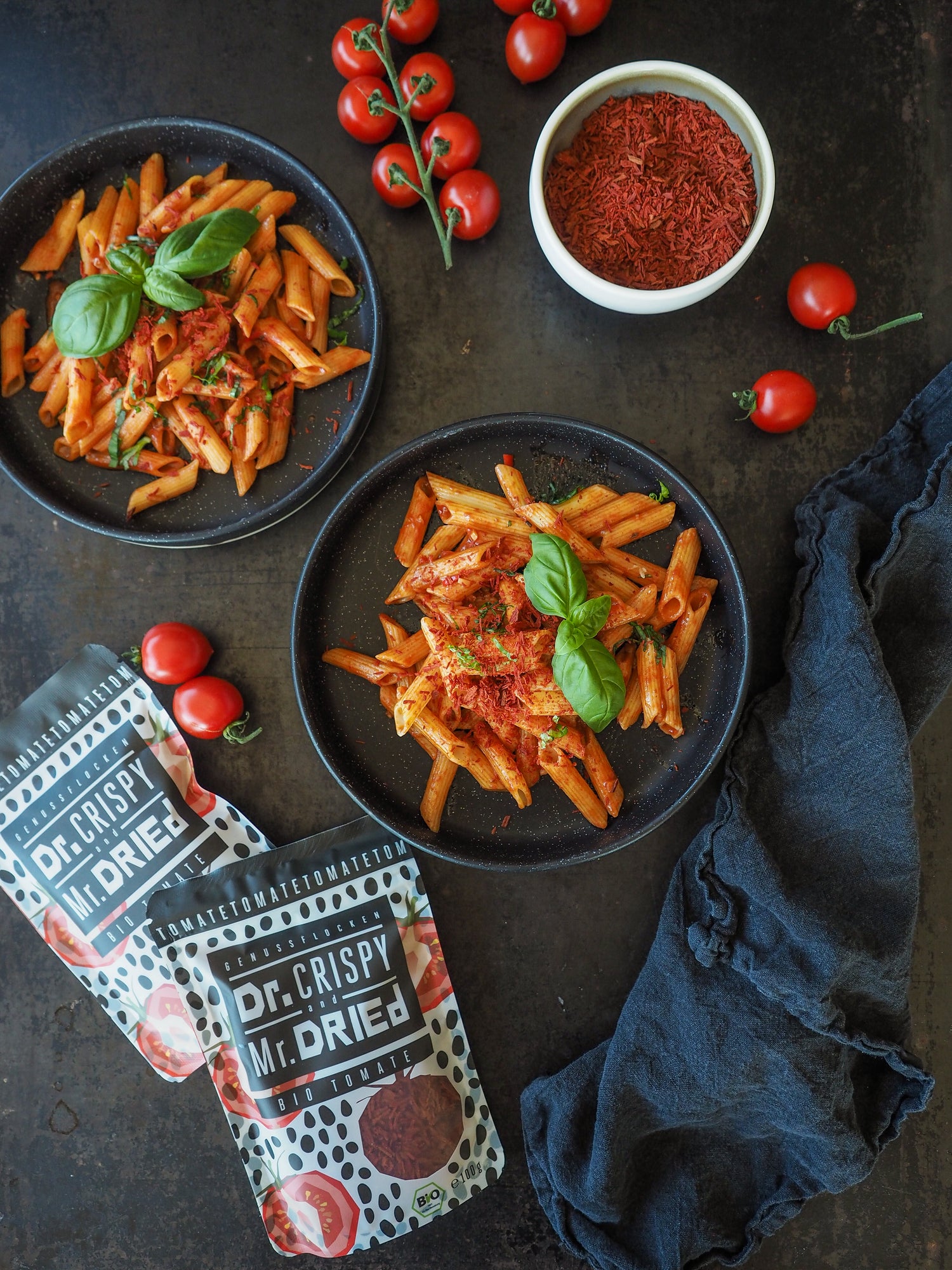 Feurig, würzig und typisch römisch – unsere Pasta all’ Arrabbiata mit getrockneten Tomatenflocken überzeugt mit scharfer Chili-Tomatensauce und intensivem Aroma: ideal für alle, die es pikant mögen – schnell gemacht, vegan und perfekt für mediterrane Genussmomente.