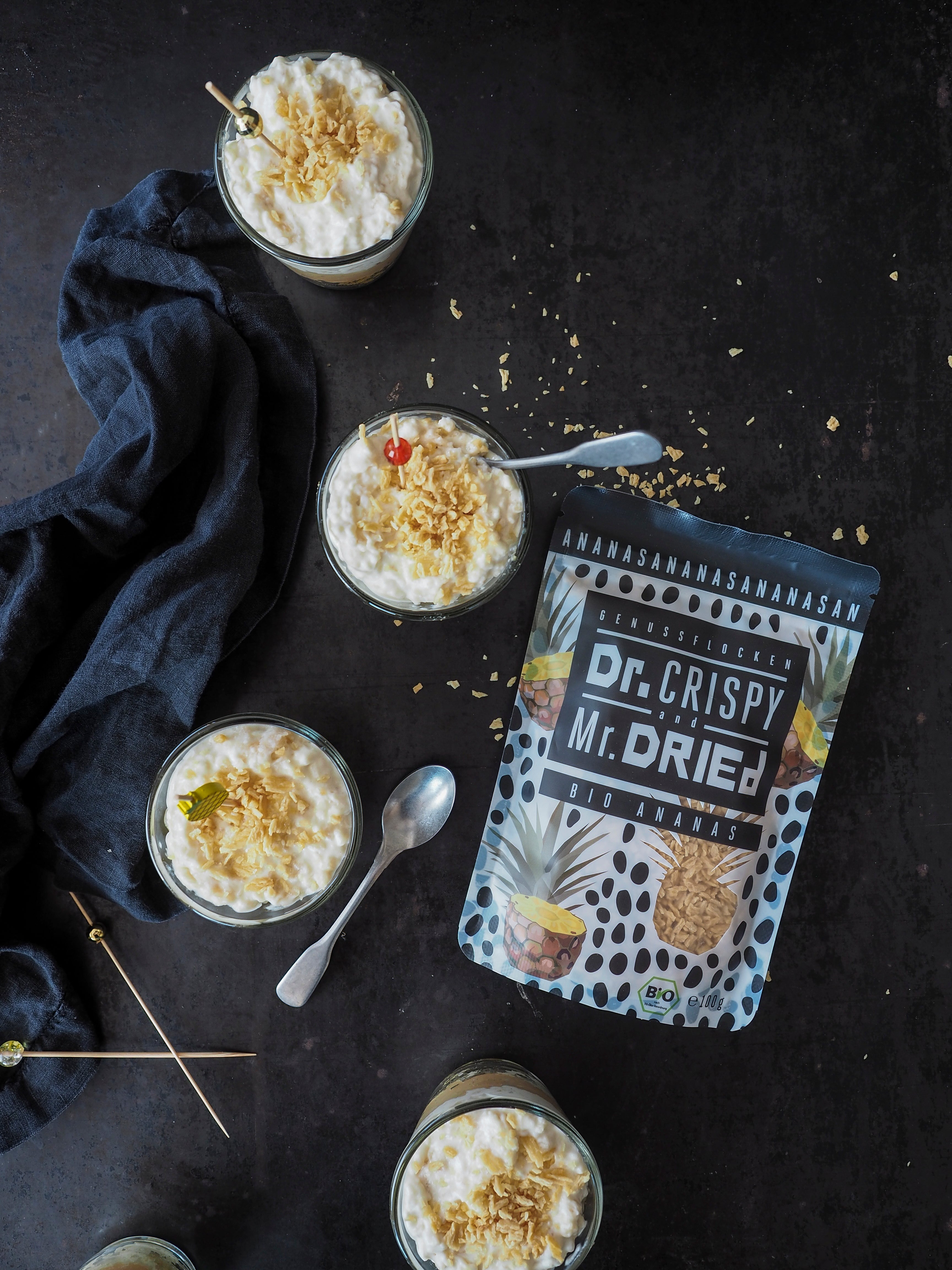 Urlaubsfeeling zum Löffeln! Dieses Dessert im Piña-Colada-Style bringt mit unseren Bio Genussflocken Ananas tropisches Aroma auf deinen Löffel. Kombiniert mit Kokosmilch, Mascarpone und Kokoslikör entsteht im Handumdrehen eine fruchtig-exotische Nachspeise – ganz ohne Zuckerzusatz und ohne künstliche Aromen. Ideal für Grillabende, Sommerfeste oder als erfrischendes Finale nach dem Essen.