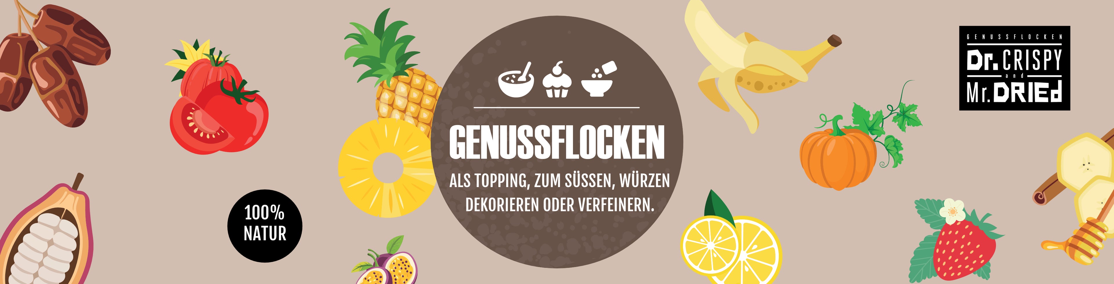 Du backst gerne? Dann probier unsere Backrezepte aus. Denn mit Dr. Crispy & Mr. Dried backt es sich hervorragend, egal ob Kuchen, Torte, Brot oder Gebäck. Unsere Flocken bleiben nämlich auch nach dem Backen crunchy und crispy. Verfeinere deine Backwaren und erlebe unverfälschten und intensiven Geschmack!
