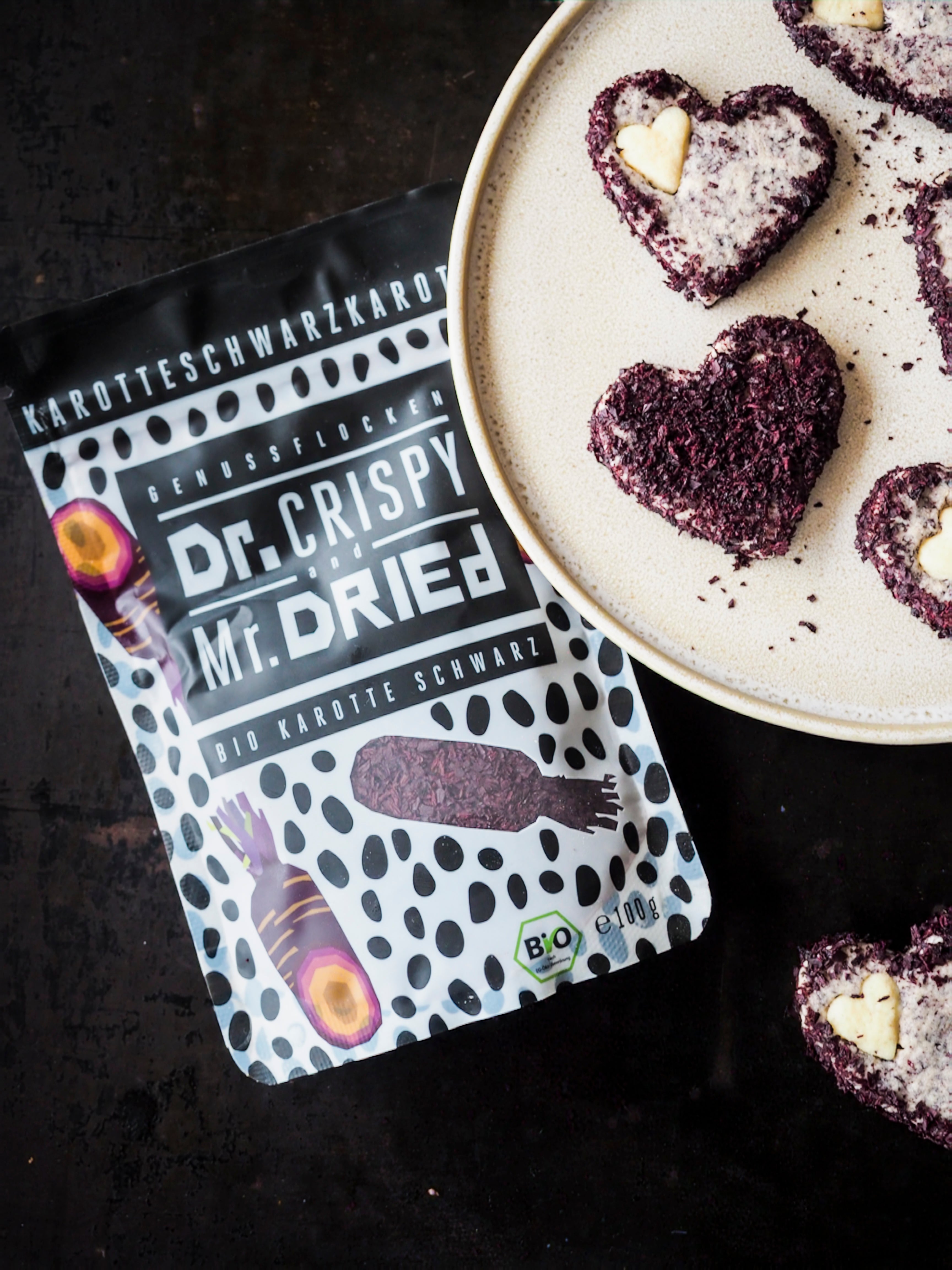 Klassisches Weihnachtsgebäck mit modernem Twist! Unser Schwarz-Weiß-Gebäck kommt ganz ohne Kakao aus – dafür mit der natürlichen Farb- und Geschmackskraft unserer Bio Genussflocken Schwarze Karotte. Das Ergebnis: fein nussige, mild erdige Teignoten in elegantem Violett – 100 % natürlich und ganz ohne künstliche Zusätze. Einfach gemacht, clean im Look und überraschend lecker – ein Hingucker auf jedem Plätzchenteller!