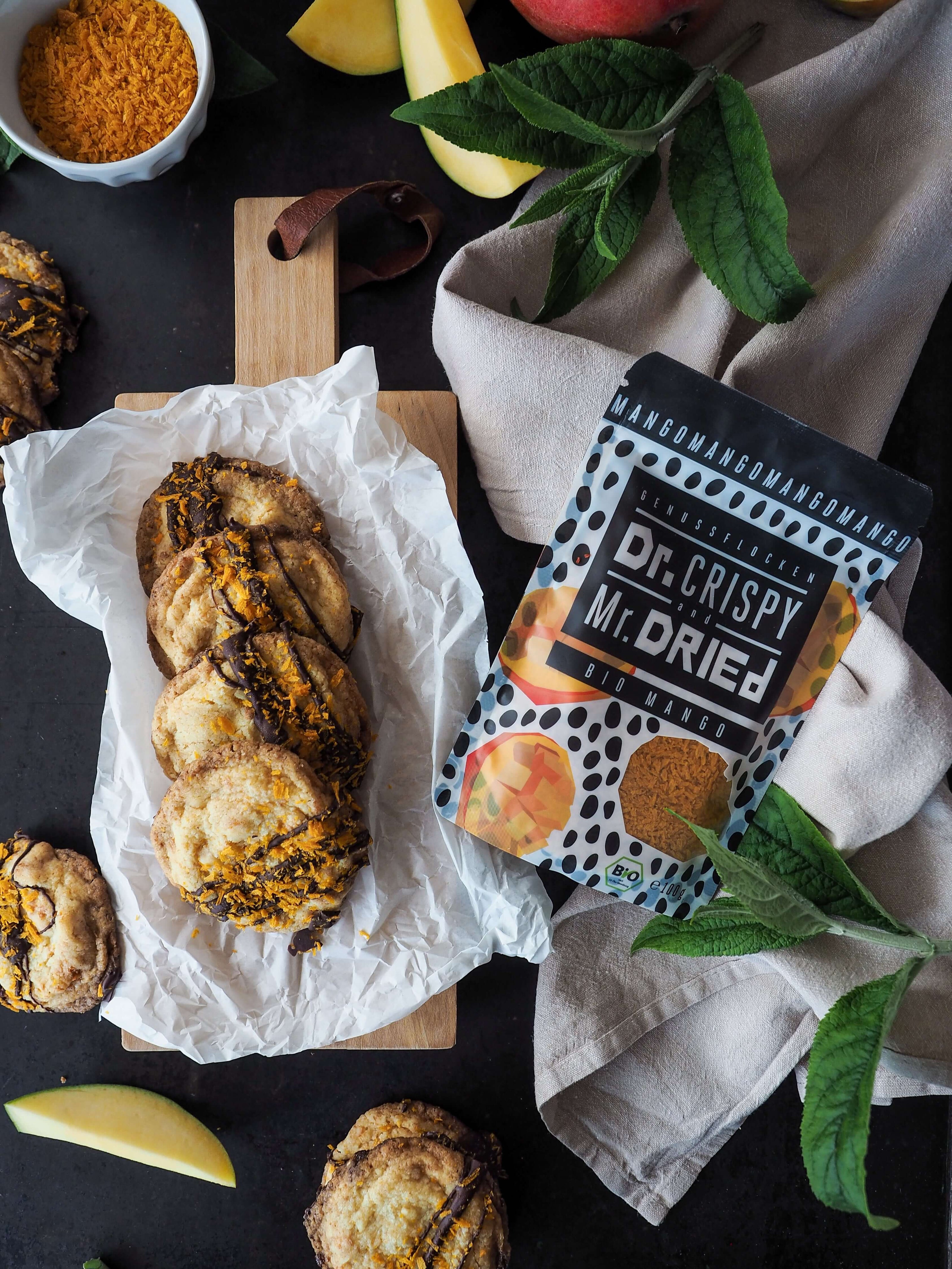 MANGO COOKIESMANGO COOKIESFruchtig, weich und voller exotischem Geschmack – unsere Mango Cookies mit getrockneten Mangoflocken bestehen zu 100 % aus echter Mango ohne Zusätze und begeistern mit ihrer natürlichen Süße und intensivem Aroma.