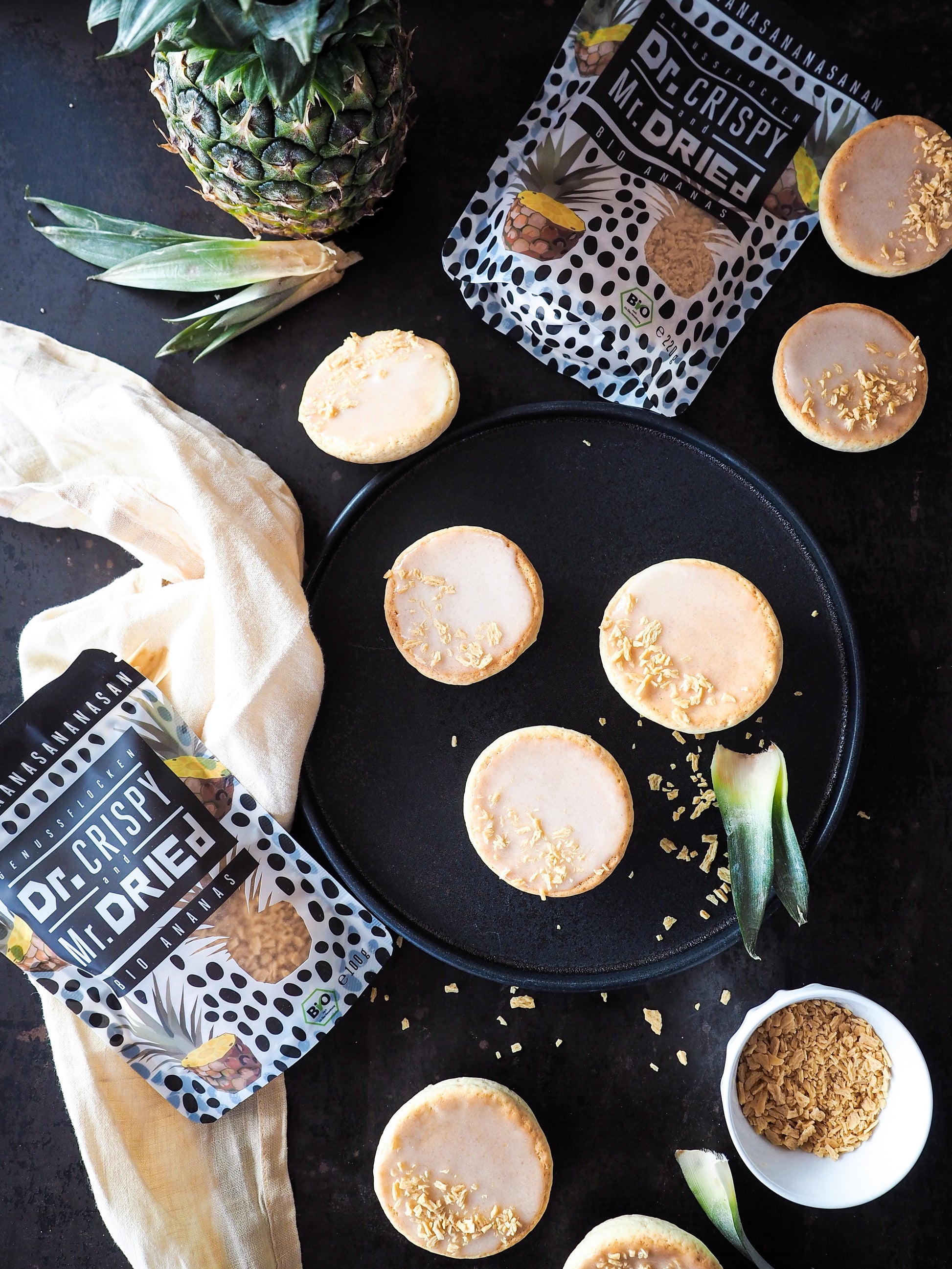 AMERIKANER MIT ANANASGLASURAMERIKANER MIT ANANASGLASURSaftig, fruchtig und einfach unwiderstehlich – unsere Amerikaner mit Ananasglasur aus getrockneten Ananasflocken bringen tropisches Flair in die klassische Gebäckspezialität.