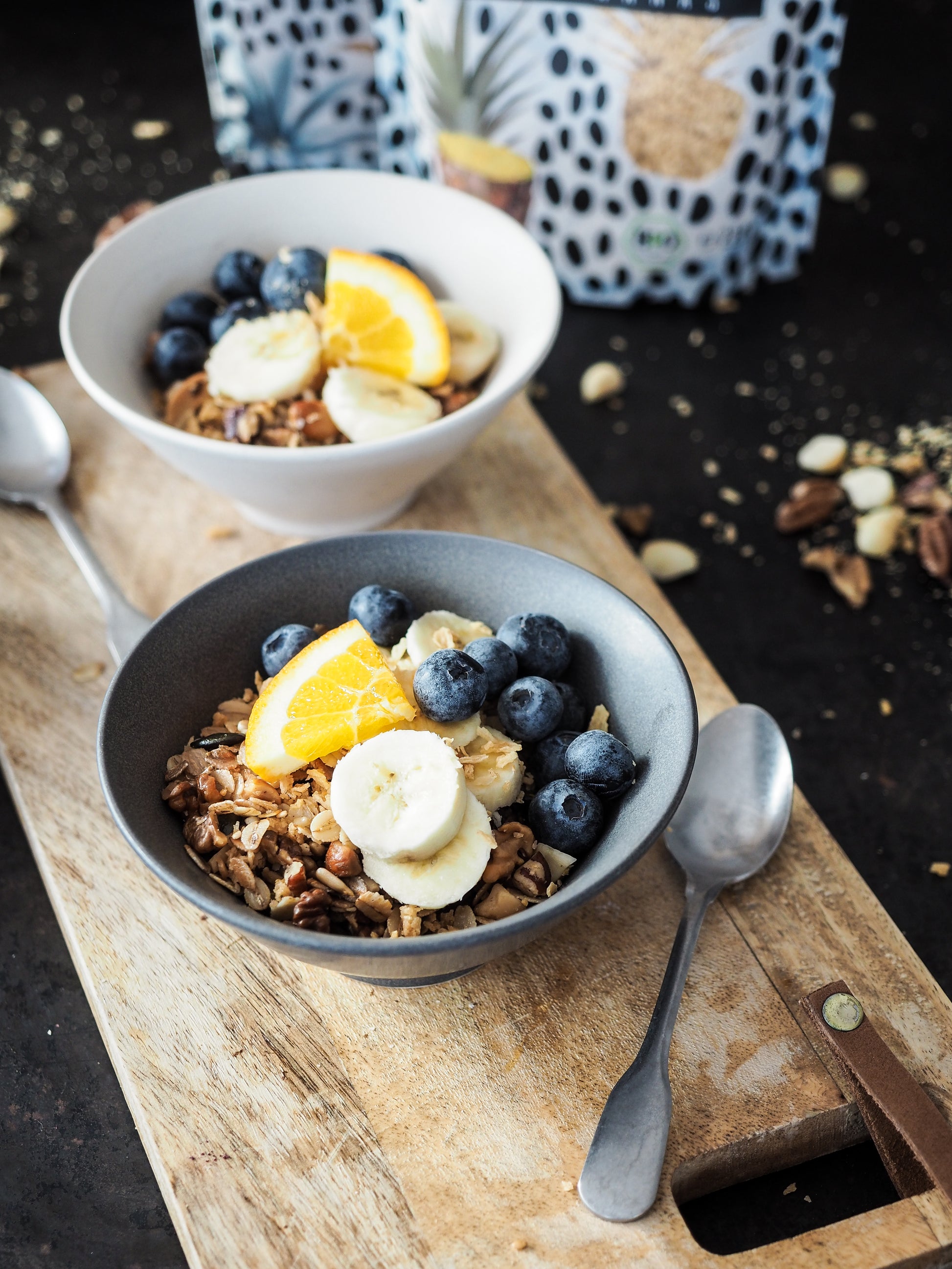 ANANAS GRANOLAANANAS GRANOLAUnser fruchtig-exotisches Rezept für knuspriges Ananas Granola – ein gesunder Frühstücksklassiker mit getrockneten Ananasflocken, Haferflocken und Superfoods.